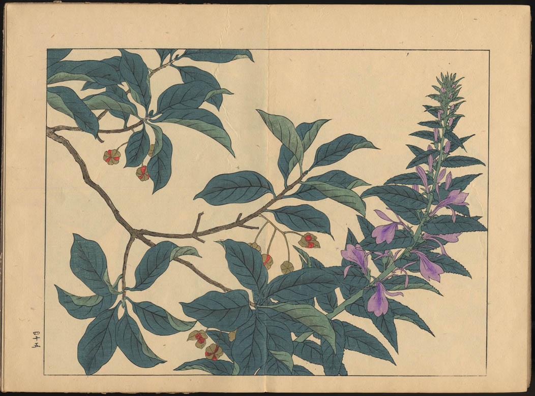 Shiki no Hana is a set of ten volumes with illustrations of flowers after the famous artist of the Rimpa School Sakai Hōitsu (1761-1828). The series includes two volumes for spring, four for summer, three for autumn and one for winter. This is the volume for the autumn and includes twenty-six plates